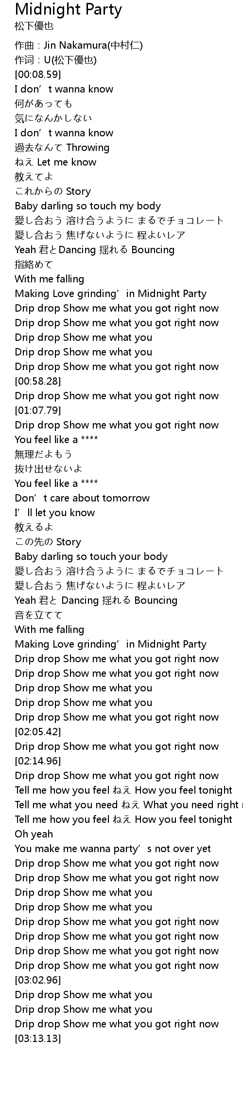 | [00:46.55] | Making Love grinding' in Midnight Party |