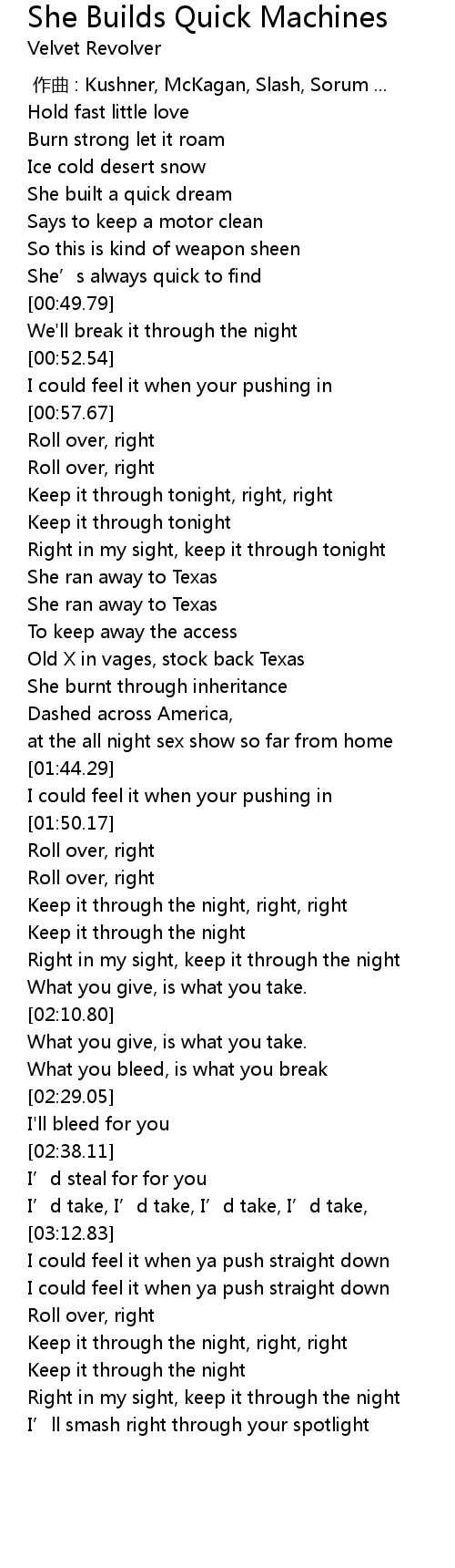 | 歌曲 | She Builds Quick Machines |