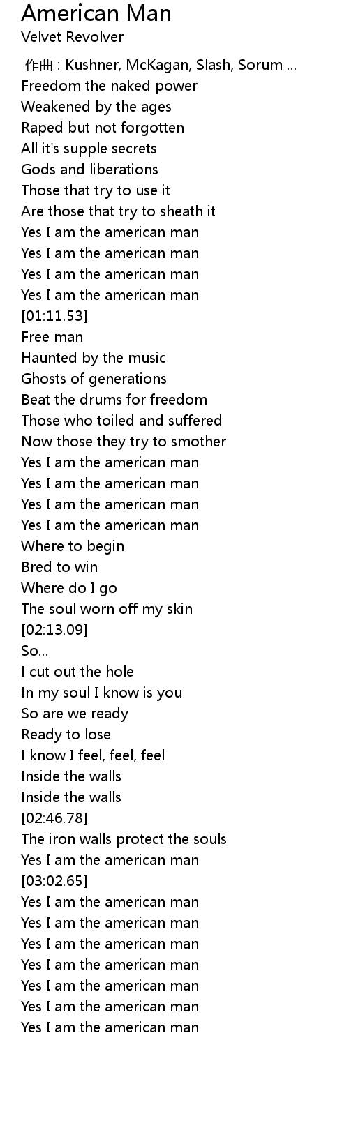 | [00:59.75] | Yes I am the american man |