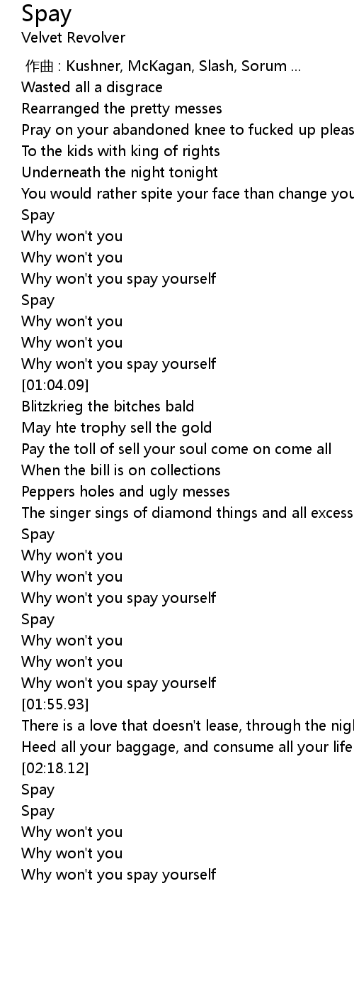 | [00:00.00] | zuo qu : Kushner, McKagan, Slash, Sorum ... |