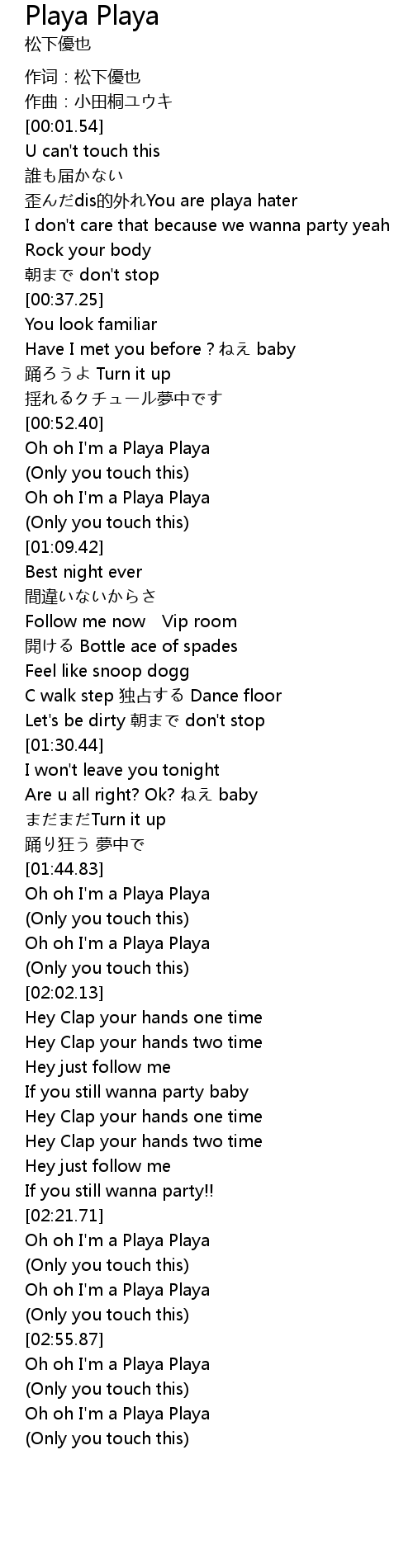 | [02:58.45] | Oh oh I'm a Playa Playa |