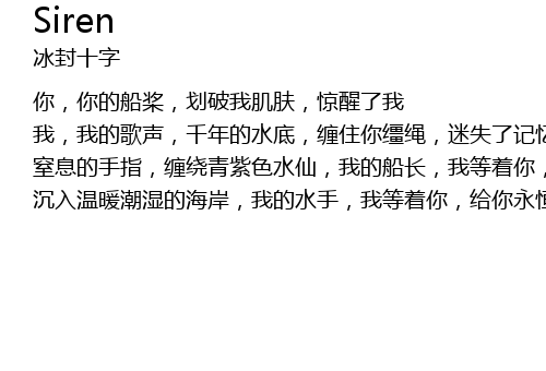 | zhì xī de shǒu zhǐ, chán rào qīng zǐ sè shuǐ xiān, wǒ de chuán zhǎng, wǒ děng zhe nǐ, wàng jì yuǎn fāng de hǎi gǎng | |