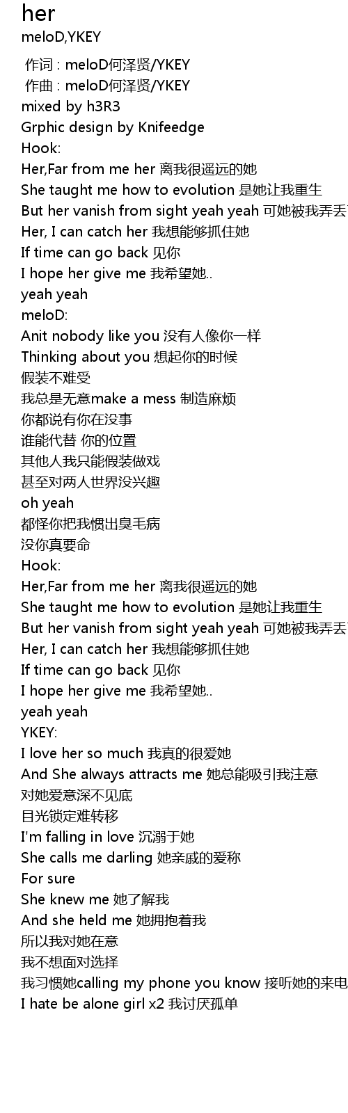 | [00:11.75] | Her, Far from me her li wo hen yao yuan de ta |