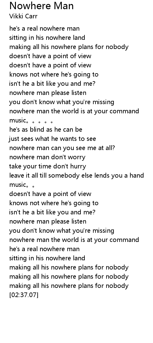 | [01:18.44] | nowhere man don' t worry |