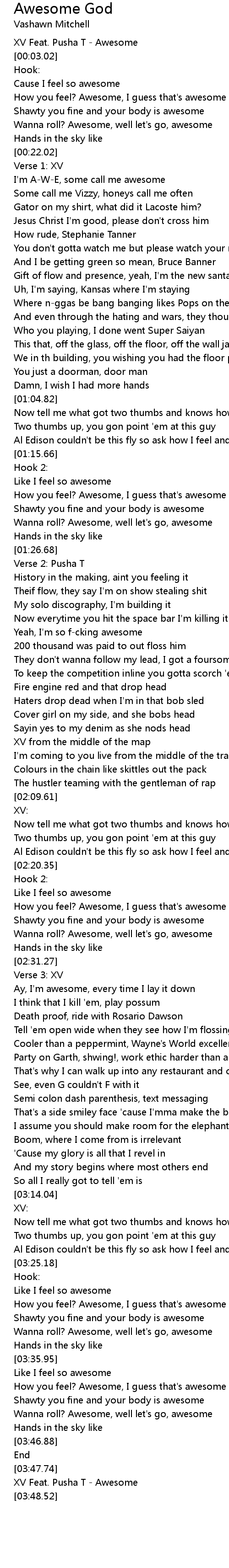 [00:00.02] XV Feat. Pusha T - Awesome