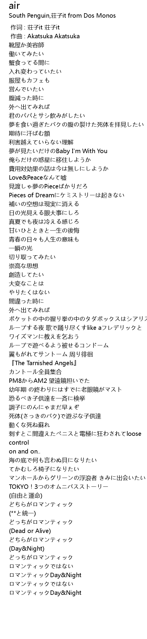 | [02:55.36] | 翼もがれてサントーム 周り徘徊 |