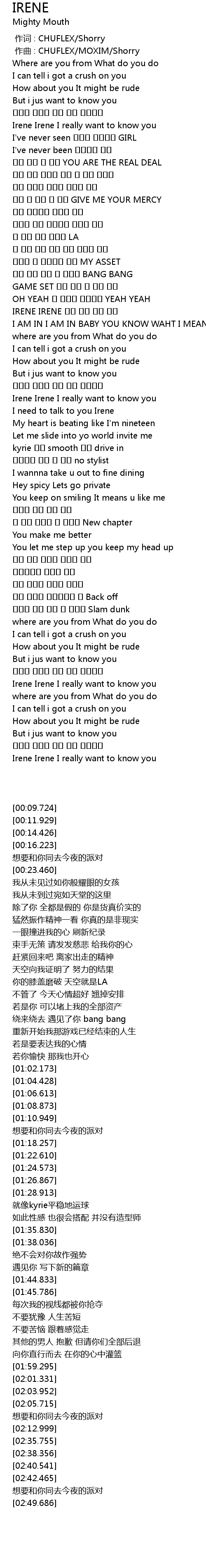 | [00:59.781] | IRENE IRENE 네가 좋음 나도 좋아 |