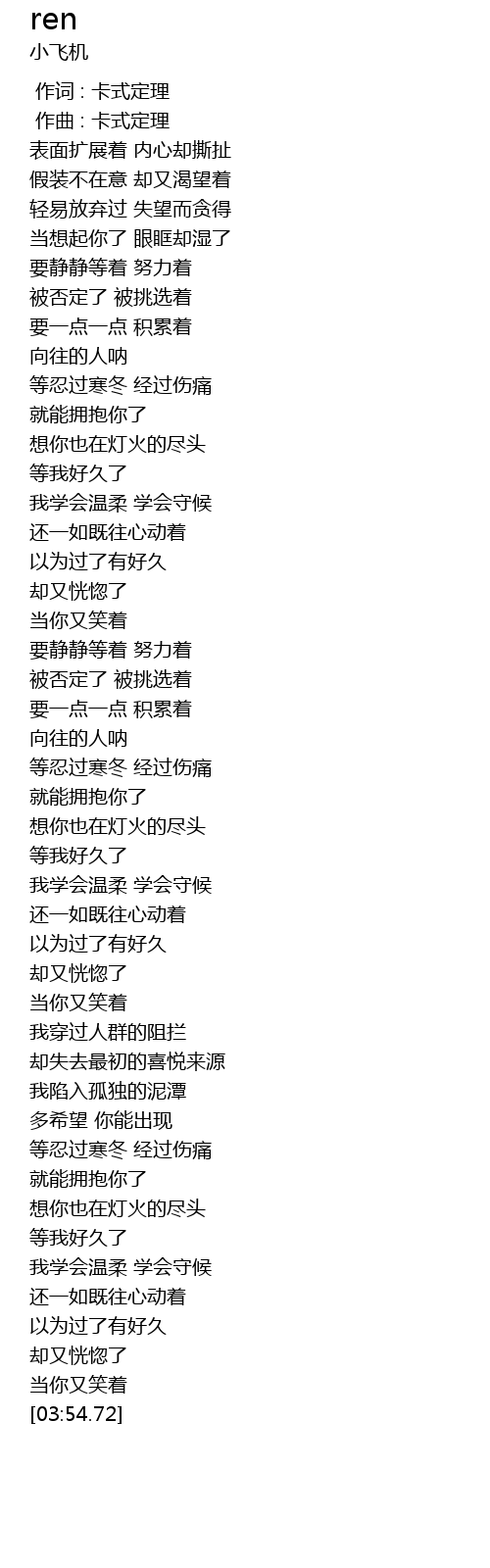| [00:19.40] | jiǎ zhuāng bù zài yì què yòu kě wàng zhe |
