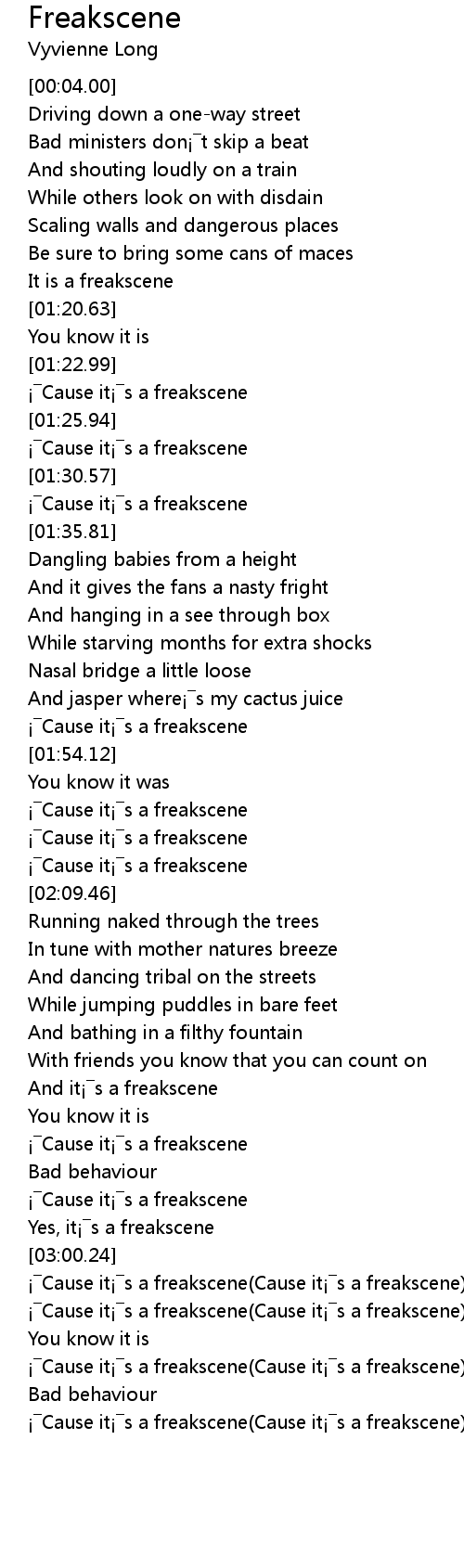 | [03:36.63] | Cause it s a freakscene Cause it s a freakscene |