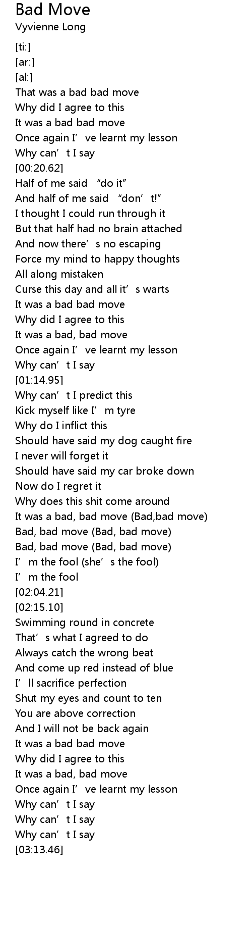 | [01:51.52] | Bad, bad move (Bad, bad move) |