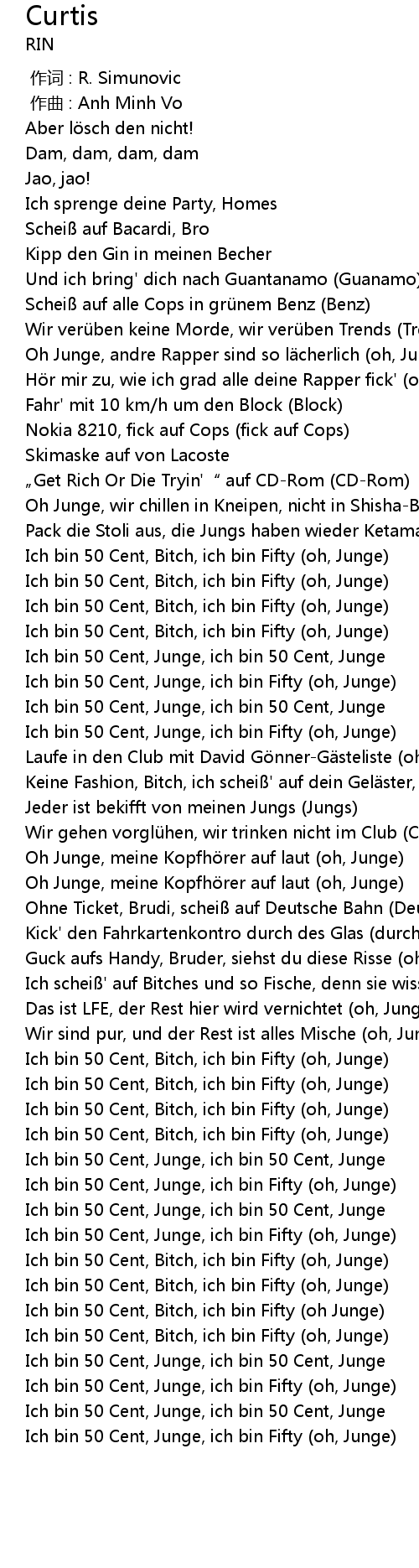 | [00:54.871] | Ich bin 50 Cent, Bitch, ich bin Fifty (oh, Junge) |