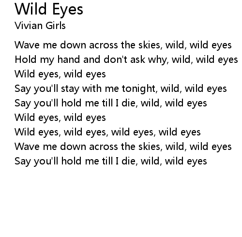 | [01:07.119] | Wild eyes, wild eyes, wild eyes, wild eyes |