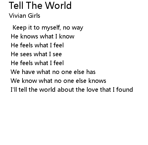 | 歌曲 | Tell The World |