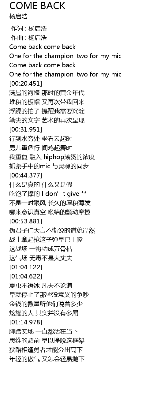 | [00:18.705] | One for the champion. two for my mic |
