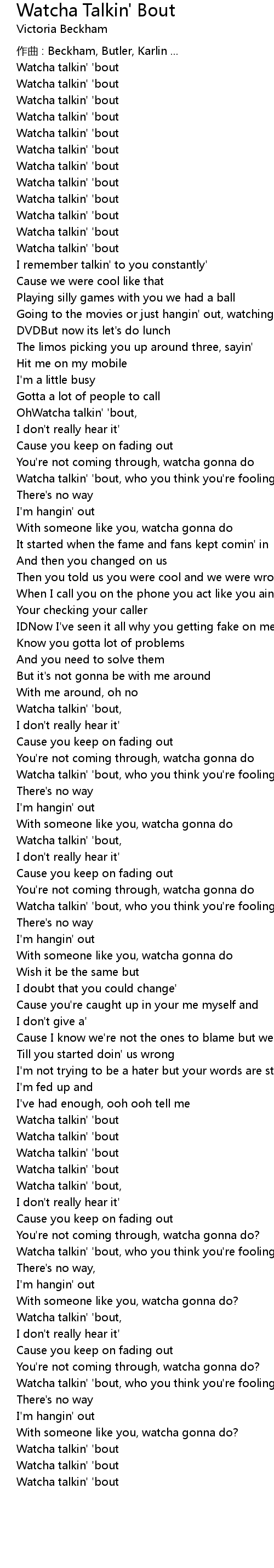 | Watcha talkin' ' bout, who you think you' re fooling | |