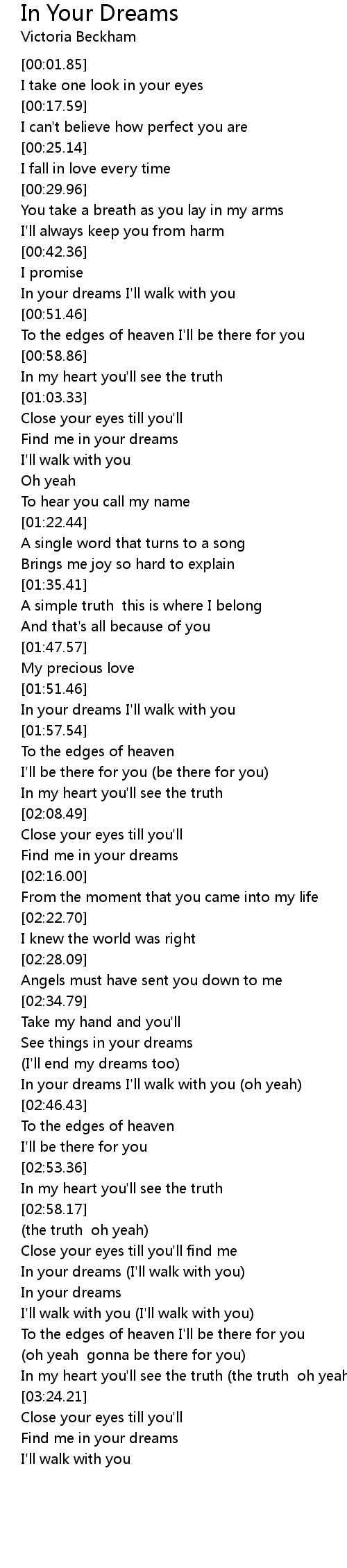 In your dreams I'll walk with you |