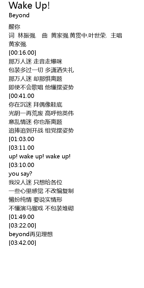 | [03:32.00] | beyond zai jian li xiang |