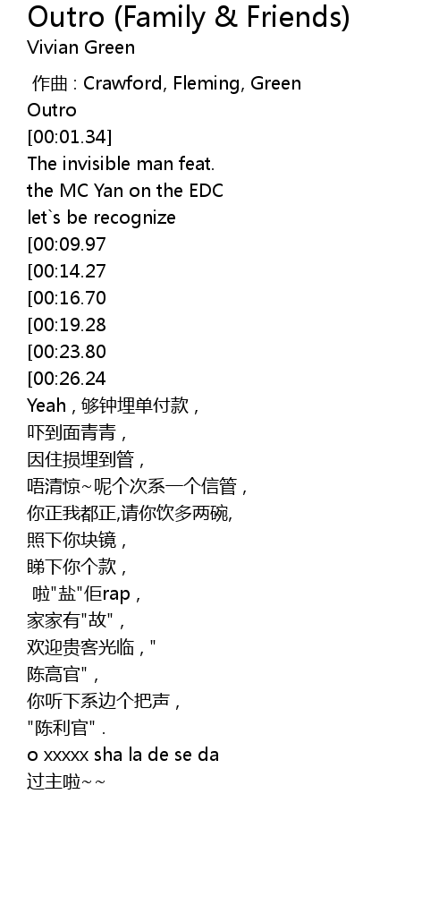 | [00:00.00] | 作曲 : Crawford, Fleming, Green |