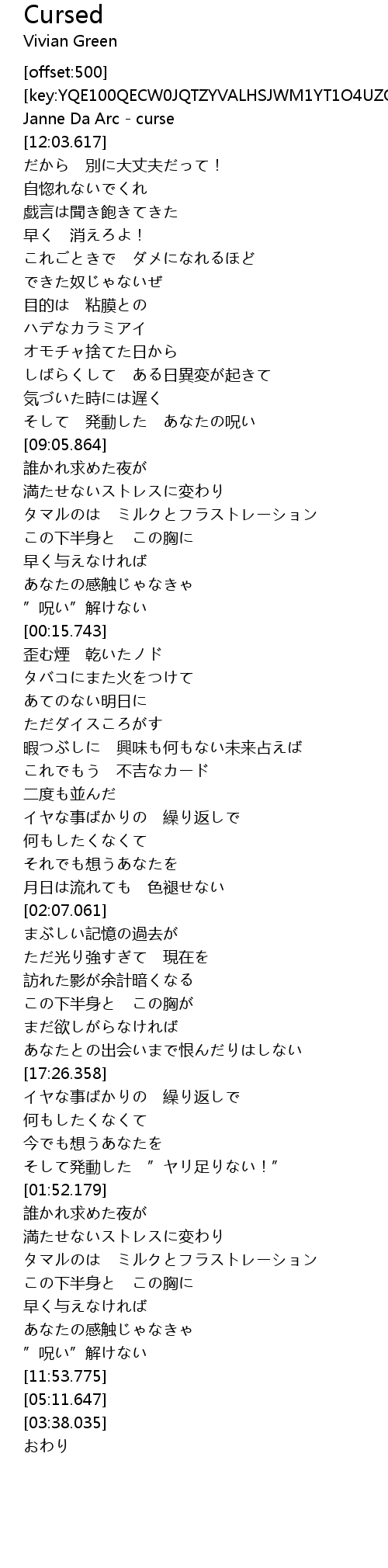 | [10:01.443] | 戯言は聞き飽きてきた |