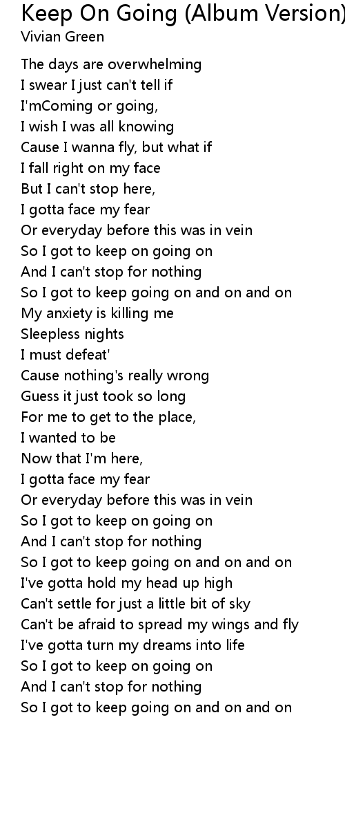 So I got to keep on going on |