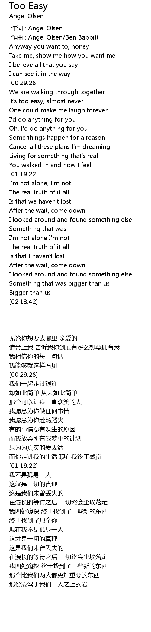 | [00:01.00] | zuo qu : Angel Olsen Ben Babbitt |