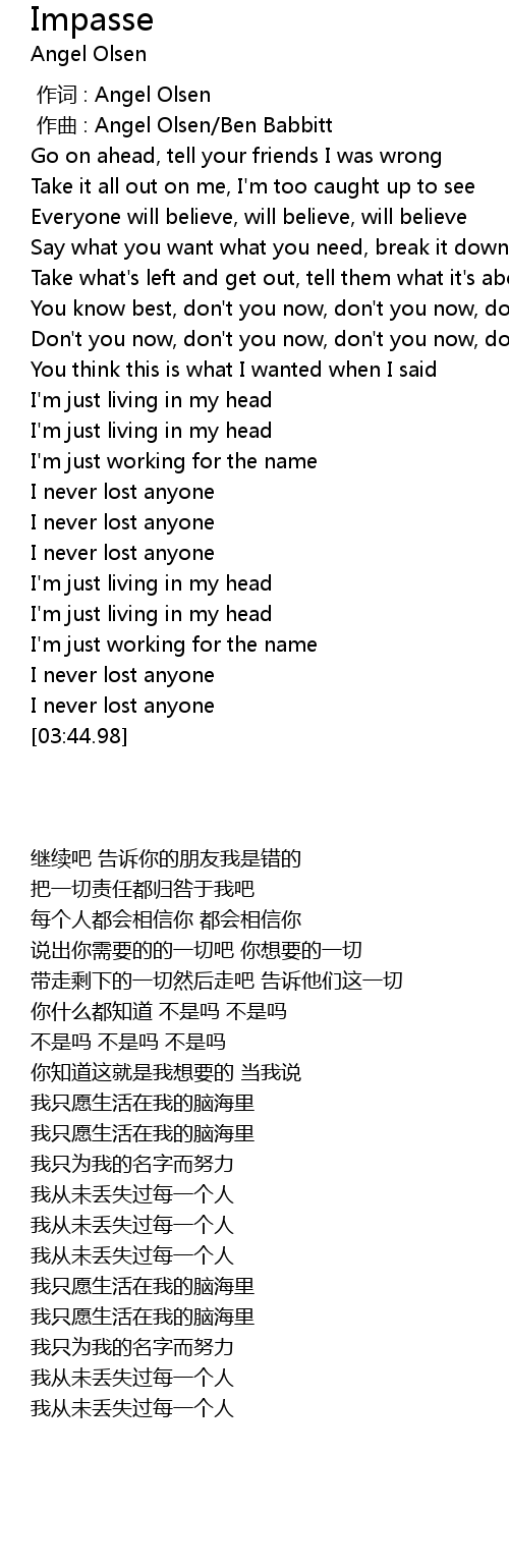 | [00:01.00] | zuo qu : Angel Olsen Ben Babbitt |