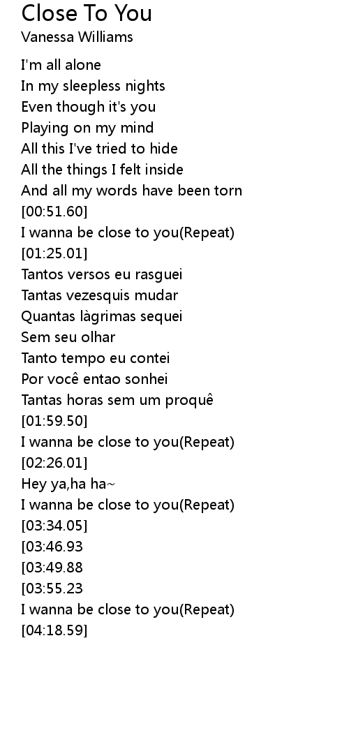 | [00:51.89] | I wanna be close to you(Repeat) |
