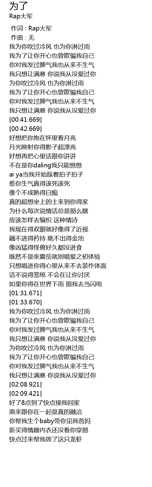 | [00:00.000] | 作词 : Rap大军 |