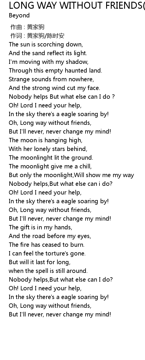 | [00:01.00] | 作词 : 黄家驹/陈时安 |