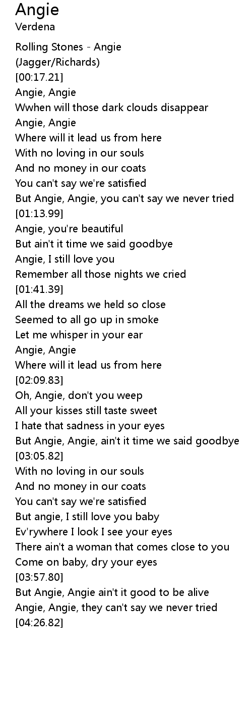 | [01:56.43] | Angie, Angie |