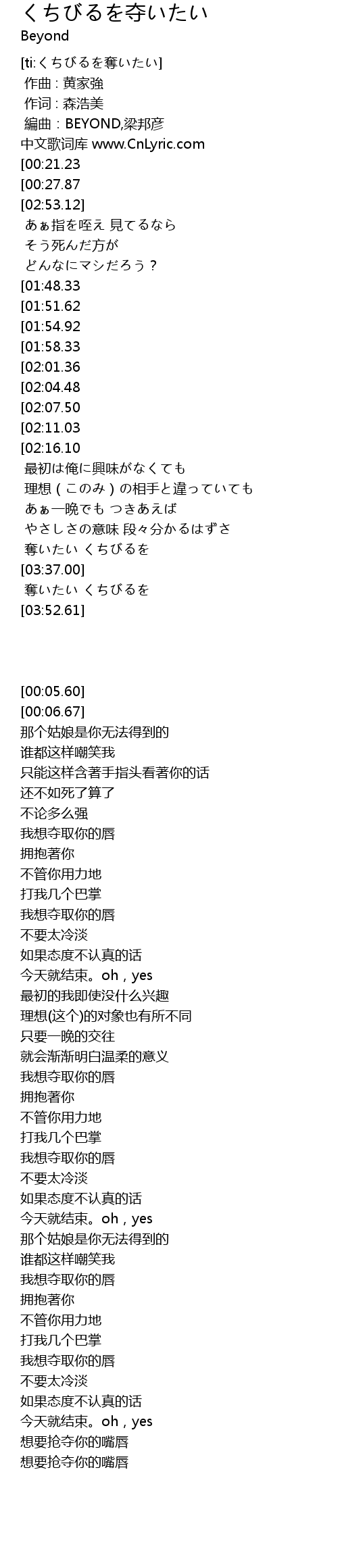 | [02:55.15][01:48.33][00:47.86] | くちびるを奪いたい |