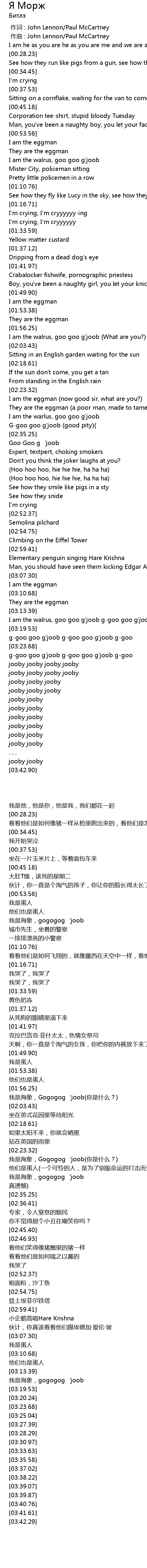 | [02:24.90] | 我是海象,Gogogog‘joob(你是什么?) |