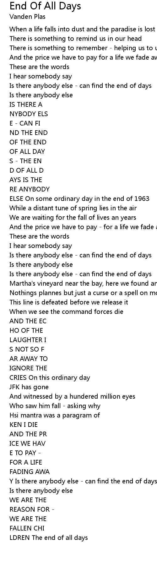 Is there anybody else - can find the end of days |