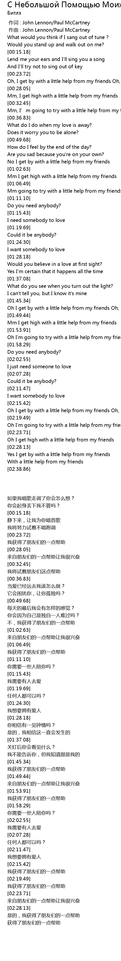 | [02:28.65] | Yes I get by with a little help from my friends |