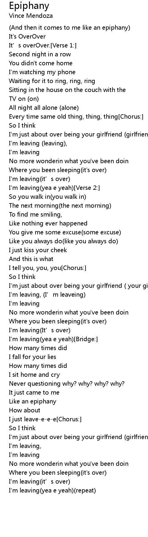 | I'm just about over being your girlfriend (girlfriend) | |