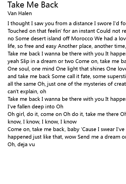 | [01:36.29] | Take me back I wanna be there with you It happened just like that, yeah Slip in a dream or two Come on, take me back Oh, deja vu |