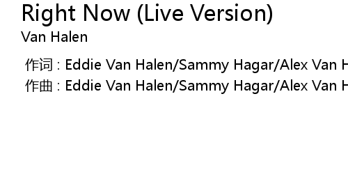 | [00:00.000] | zuo ci : Eddie Van Halen Sammy Hagar Alex Van Halen Michael Anthony |