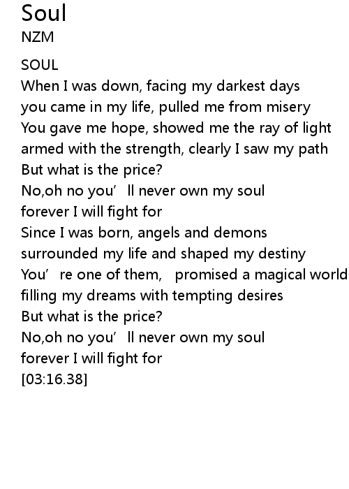 | [00:51.60] | No,oh no you’ll never own my soul |