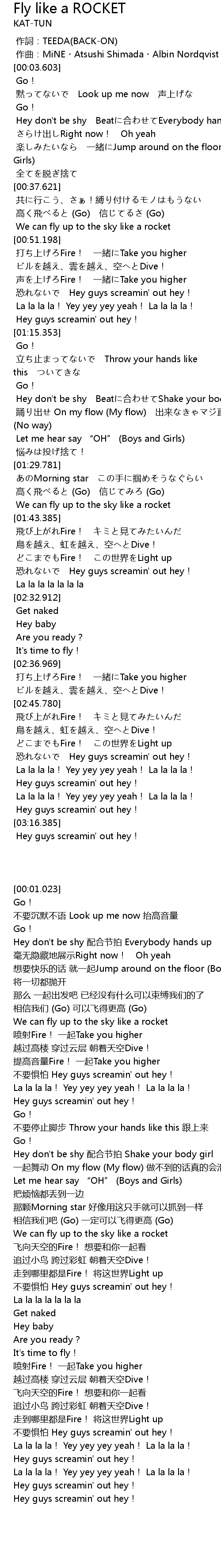 | [02:38.264] | 喷射Fire! 一起Take you higher |