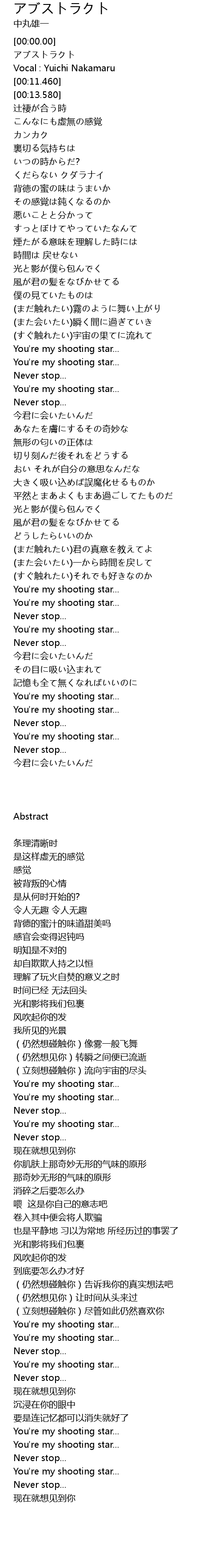 | [01:01.259] | (すぐ触れたい)宇宙の果てに流れて |
