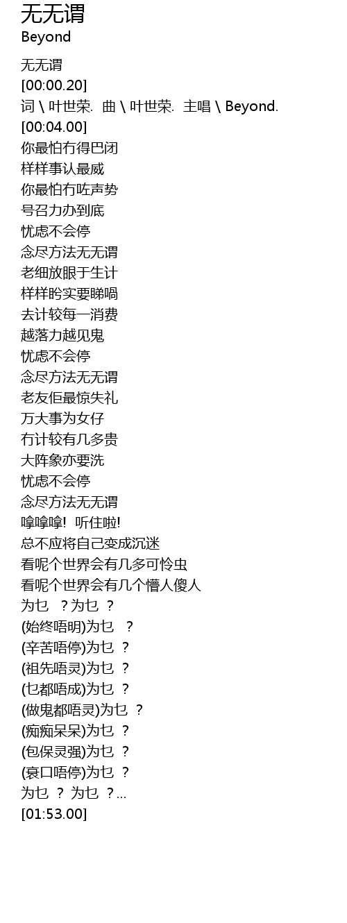 | [00:00.00] | 无无谓 |