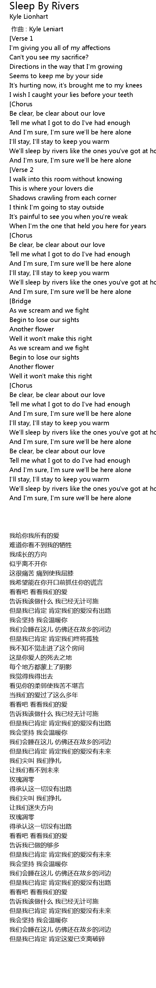 | 歌曲 | Sleep By Rivers |