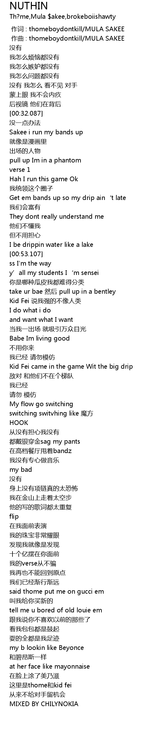 | [00:00.000] | 作词 : thomeboydontkill/MULA SAKEE |