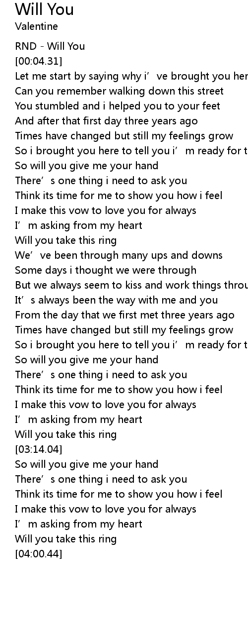 | [03:55.63] | Will you take this ring |