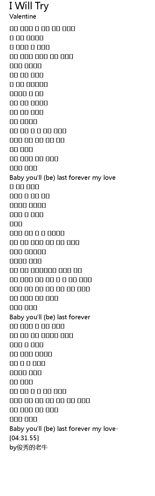| [04:14.77] | Baby you'll (be) last forever my love- |