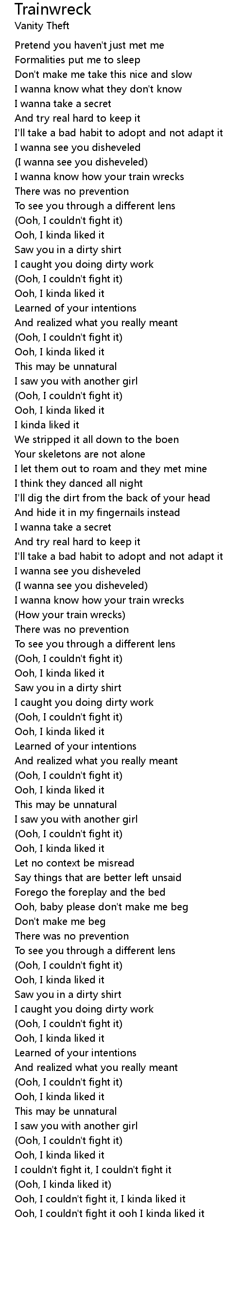 I wanna know how your train wrecks |