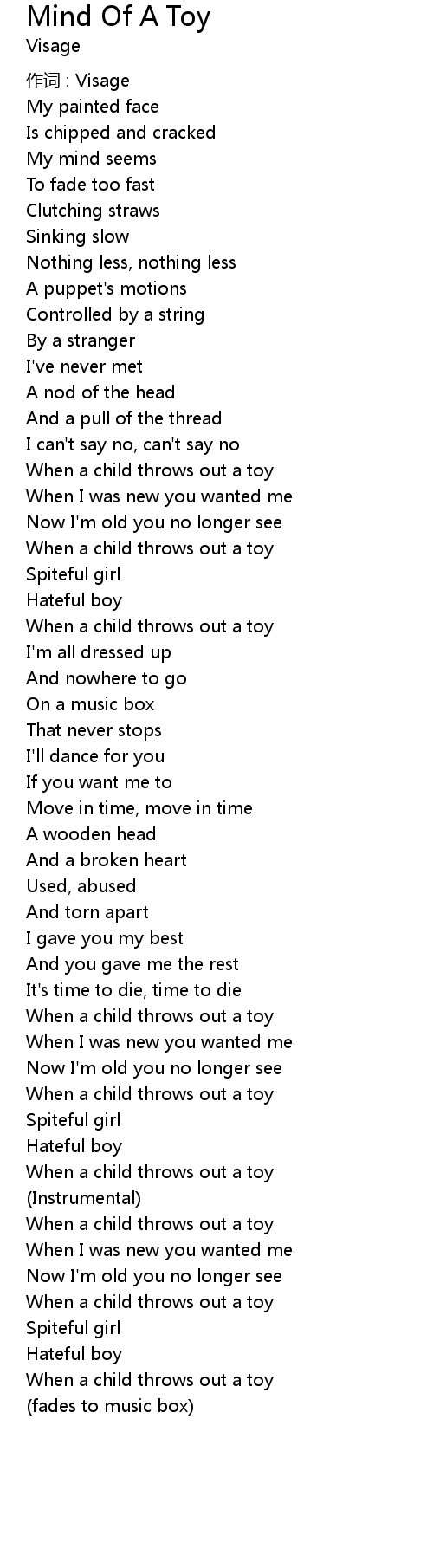 | 歌曲 | Mind Of A Toy |