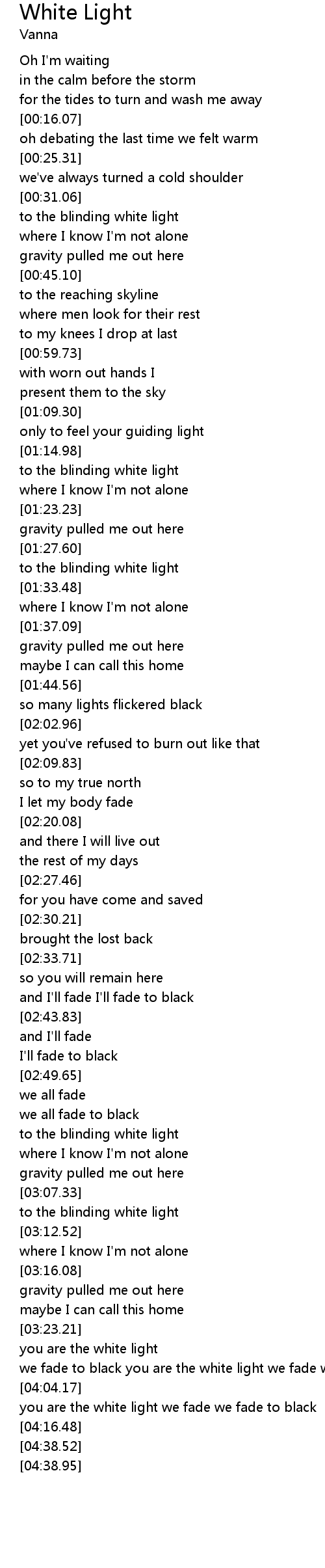 we fade to black you are the white light we fade we fade to black |