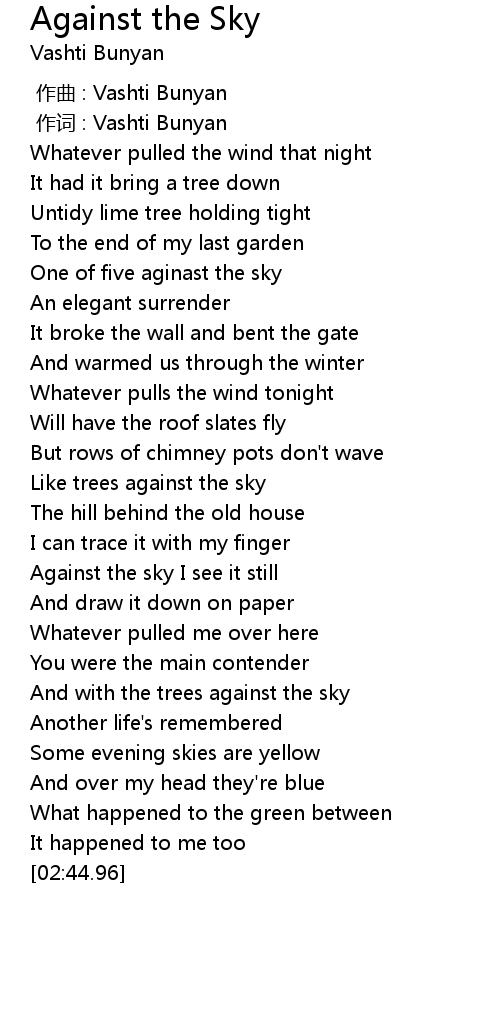 | [00:01.00] | 作词 : Vashti Bunyan |
