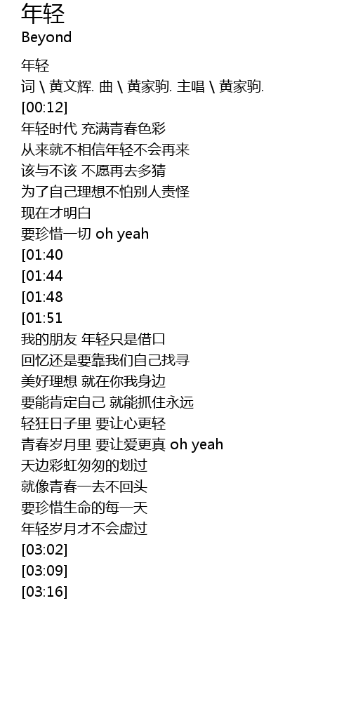 | [02:49][01:51][00:53] | 要更珍惜青春的岁月 oh yeah |